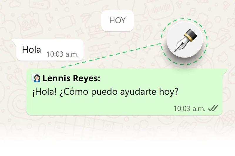 Agrega tu firma o la del asistente al mensaje. Deja claro quién atiende y mejora la relación con tus contactos.