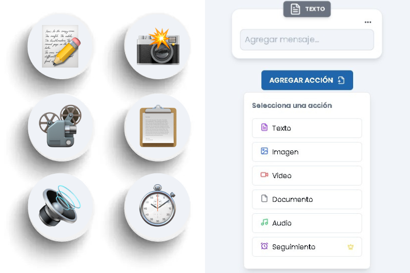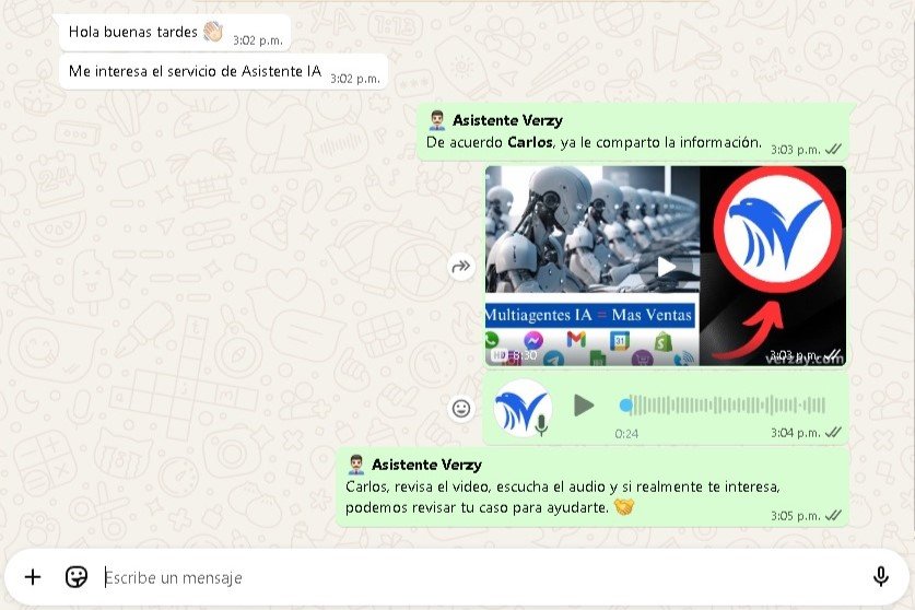 Envíale a tus clientes de forma nativa y natural por medio de tu asistente (Fotos, videos, audios, PDFs, secuencias y mas) para una interacción mas humanizada